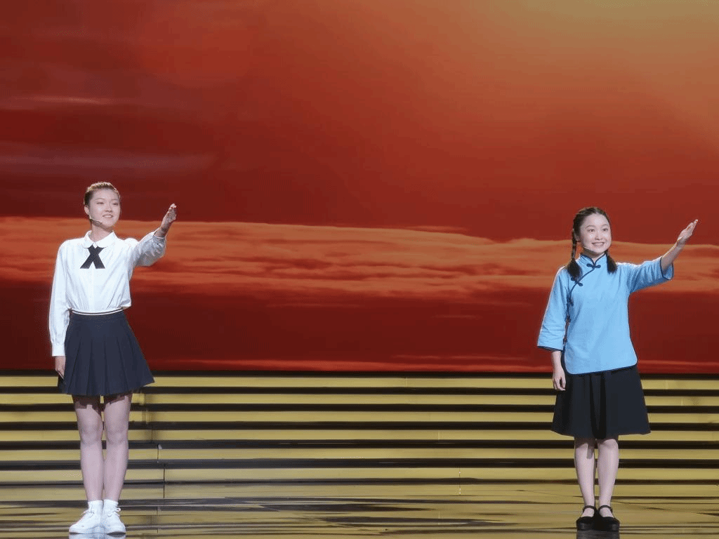 展演现场,获奖选手代表分别围绕“江山如画”“时空对话”“致敬英雄”“美好新时代”四个主题,通过诵读、书写和讲解等形式为现场观众带来精彩的视听盛宴。玉溪师范学院大学生组一等奖获奖作品《我们的青春》(指导老师:普通、李潇潇)在第二篇章《时空对话》进行展演,宿耀月、孙亦心两位同学通过讲述相隔百年的青春对话,展现了新时代大学生昂扬向上的精神风貌,抒发了“强国有我”的报国之志,精彩的朗诵博得了现场观众热烈的掌声。