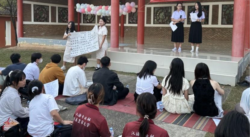 活动以“讲好中国故事 传播中华文化”为主题,通过中泰学子诵读中国古典诗词、体验中国书法艺术、演唱中国风歌曲、欣赏中国传统舞蹈、举行成语接龙游戏以及感受中国优秀传统节日文化等内容展开。活动由张红云和赵敏老师担任策划指导,2021级泰语本科班清莱班点同学组织开展。
