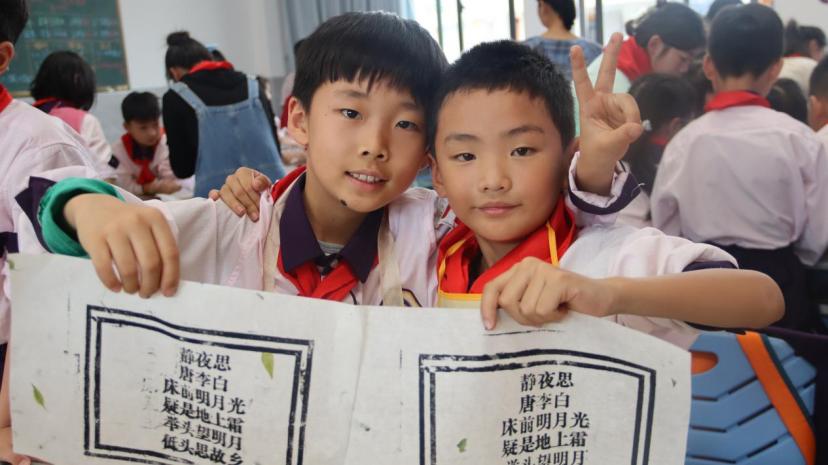 小学生们在文学院同学的带领下,在京剧脸谱知识中学习中华文化的道德观,在活字印刷中体验汉字传承的意义,在灯笼字谜中感受汉字的趣味,在唐代服饰手工中理解文化的开放包容,在诗词扇面中体会中华文明的雅趣,小朋友们还集体观看了国家语言文字数字博物馆的《甲骨成语》,手绘了甲骨文书签作为自己的六一节礼物。