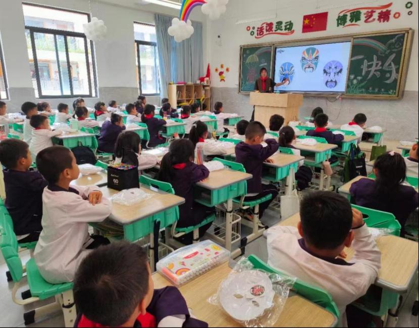 玉溪师范学院附属小学作为国家语言文字推广基地(玉溪师范学院)的实践分基地,以“诗韵书香润童心”为校园文化品牌,将中华经典融入到“五育融合”的学校教育中,促进学生的全面发展。本次活动社团根据小学生特点,精心设计了“京剧脸谱”“灯笼字谜”“活字印刷”“华服礼仪”“扇上字画”“甲骨成语”六种文化小课堂,把讲解中华优秀语言文化与手工制作、文化体验相结合,新颖有趣的国学课覆盖了全校所有班级。