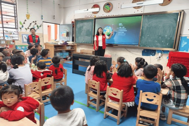 “蒲公英”推普实践团的三支小分队分别深入怒江傈僳族自治州贡山独龙族怒族自治县独龙江乡迪政当村、玉溪市峨山彝族自治县小街镇水车田村以及元江哈尼族彝族傣族自治县羊街乡党舵村,面向汉族、独龙族、蒙古族、彝族、哈尼族、拉祜族等不同民族幼儿开展推普活动。志愿者们打造“游戏化课堂”,通过游戏互动的方式提升幼儿普通话语用能力,如通过“萝卜蹲”游戏锻炼幼儿的倾听与反应能力,通过“传话筒”游戏巩固幼儿语言组织和规范发音能力。