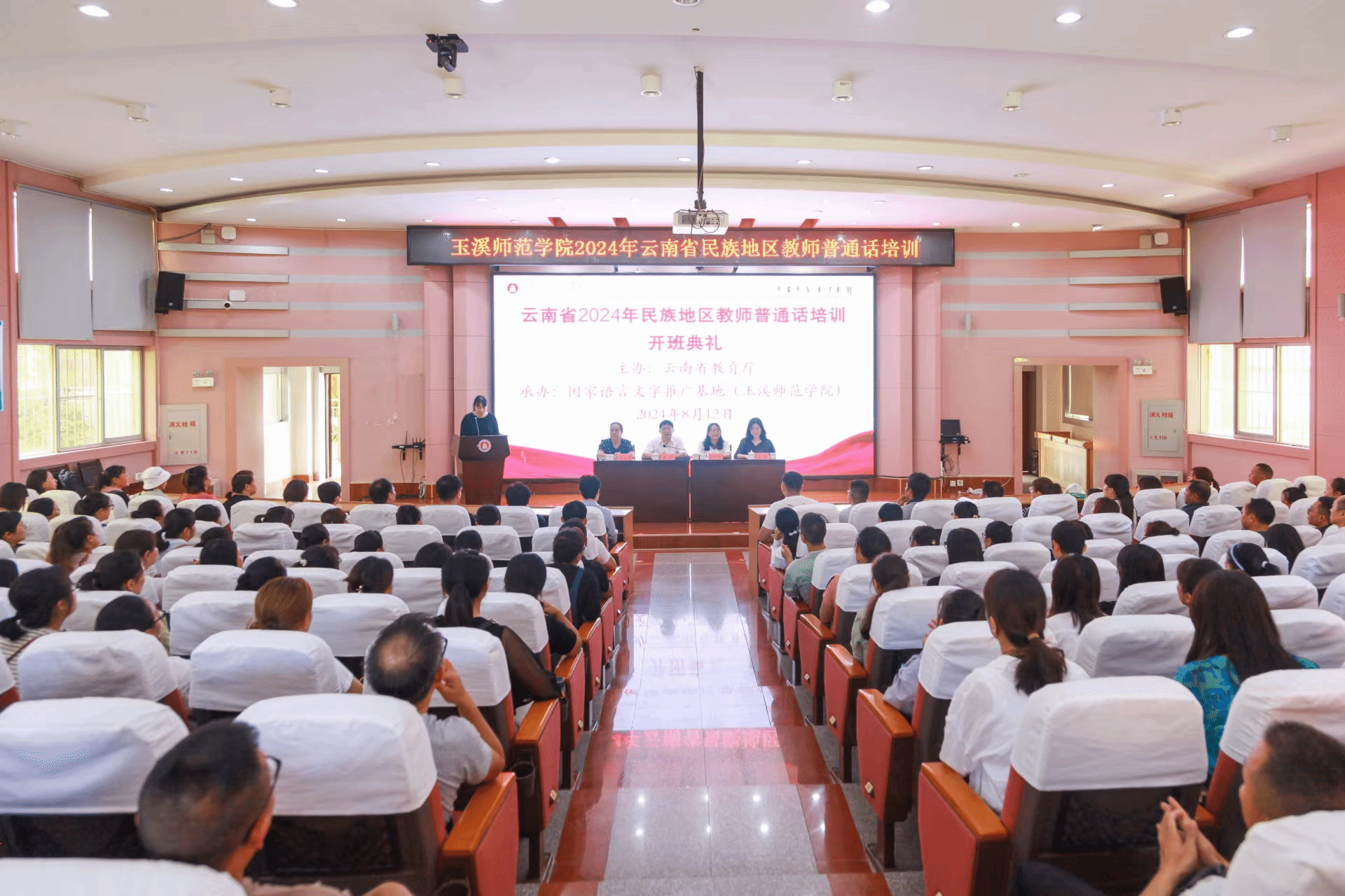 国务院办公厅印发的《关于全面加强新时代语言文字工作的意见》中强调,要大力提高教师国家通用语言文字核心素养,加强民族地区教师国家通用语言文字教育教学能力培训,提高教师国家通用语言文字应用能力。为贯彻落实教育部、国家语委对教师普通话的等级要求,8月11日至20日,由云南省教育厅主办,国家语言文字推广基地(玉溪师范学院)承办的2024年民族地区教师普通话培训在玉溪师范学院顺利举行。