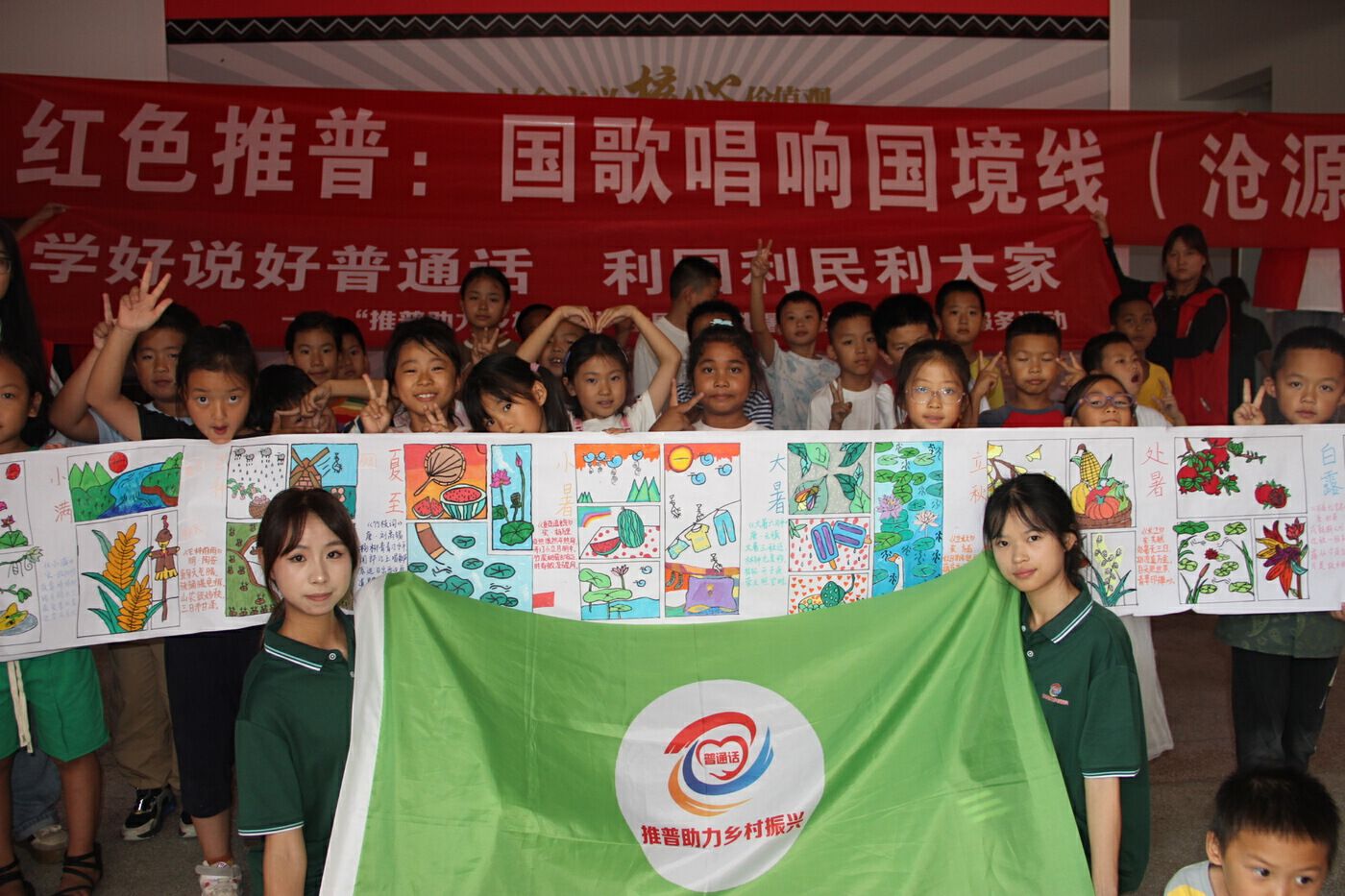 在马关县金厂镇中心学校,实践团成员与43名苗族瑶族孩子共上一堂课、共唱一首歌、共传一份情,带领孩子们在中越边境线上升国旗、唱国歌、共读《聂耳日记》。勐腊县勐满镇实践团在中老边境勐满镇曼烈村组织开展了以“国歌唱响国境线,聂耳故事润童心”为主题的爱国主义教育课堂,并为界碑描红、唱响国歌。沧源县勐董镇实践团在中缅边境抵边村向佤族孩子们讲述了聂耳与故乡玉溪、与母亲的感人故事,将聂耳母亲为聂耳种下的“音乐、勤奋学习、善良”三粒种子撒在孩子们的心田。
