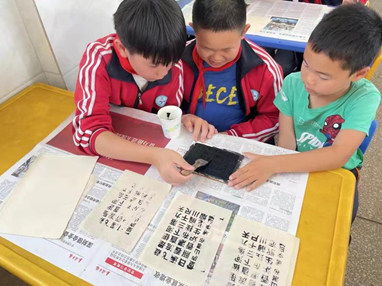 活动的亮点在于“活字印刷”体验环节。志愿者们精心准备,带领孩子们亲手触摸古老的活字,体验这一承载着千年文明智慧的印刷技术。在志愿者的耐心指导下,孩子们逐一排版、上墨、印刷,亲手制作出属于自己的“作品”。这一过程中,孩子们不仅直观感受到了汉字的魅力和文字的力量,更深刻理解了语言文字在传承文化、传播知识中的核心作用,从而进一步增强了学习普通话、使用规范汉字的责任感和使命感。