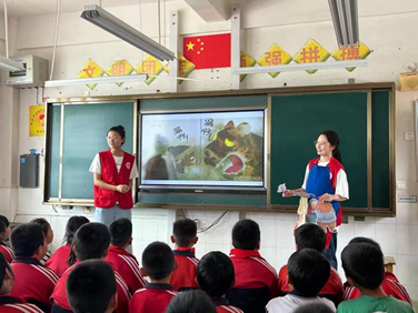 活动伊始,推普团志愿者们以情境模拟的方式,深入浅出地向西河小学的孩子们阐述了普通话的定义与重要性,强调其在促进人际交流、拓宽知识视野中的不可替代作用,有效提升了孩子们学习普通话的自觉性和积极性。随后,志愿者们别出心裁,通过围裙剧的形式,生动演绎了中国传统民间绘本故事《漏》。这一创新教学方式不仅让孩子们在欢声笑语中领悟了故事背后的教育意义,还激发了他们对中华文化的浓厚兴趣。此外,推普团还组织了国学经典《弟子规》的诵读活动,通过集体朗诵,不仅锻炼了孩子们的语言表达能力,还让他们在潜移默化中接受了传统文化的熏陶,增强了文化自信。