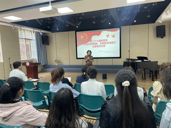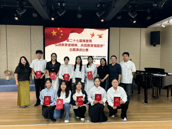 为深入学习贯彻党的二十大精神和习近平总书记关于弘扬教育家精神的重要指示,全面加强新时代教师队伍建设,弘扬高尚师德师风,引导学生涵养教育情怀,提升专业素养,营造争做“四有”好老师的浓厚氛围。在第27届全国推广普通话宣传周到来之际,教师教育学院成功举办了以“弘扬教育家精神”为主题的演讲比赛。比赛由国家语言文字推广基地(玉溪师范学院)主办,教师教育学院承办。担任本次比赛的评委有云南省普通话测评员常雯婕、张淑凤、刘宪斌、马米奇。