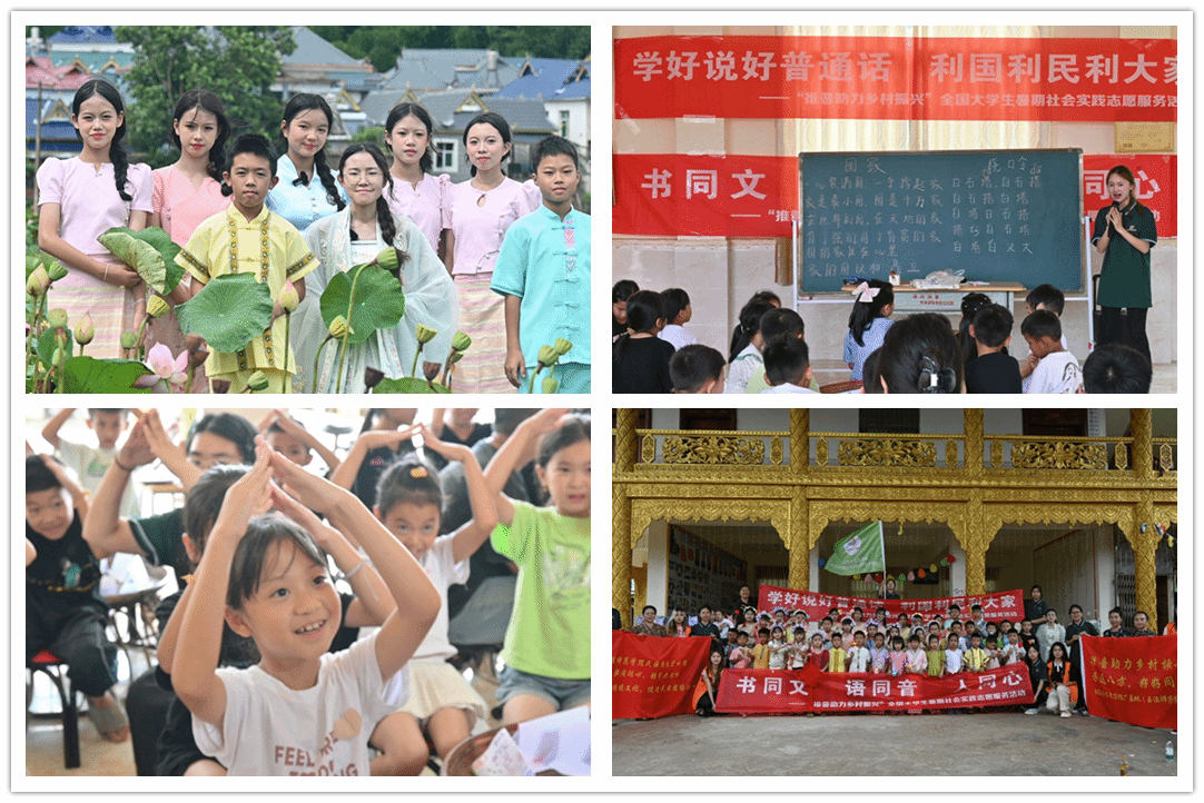 玉溪师范学院文学院“语通八方,籽籽同心”推普实践团一行14人于2024年7月14日—23日在西双版纳州勐海县勐遮镇开展为期10天的推普实践活动。实践团成员们以“京剧传唱古诗词、大青树下读《论语》、八角亭里说传承”等活动传承中华优秀传统文化,推广语言文字数字博物馆、推普助力乡村振兴等数字化语言服务平台,教会村民网上订票、医院挂号、办理社会保障卡等,助力数字乡村建设。