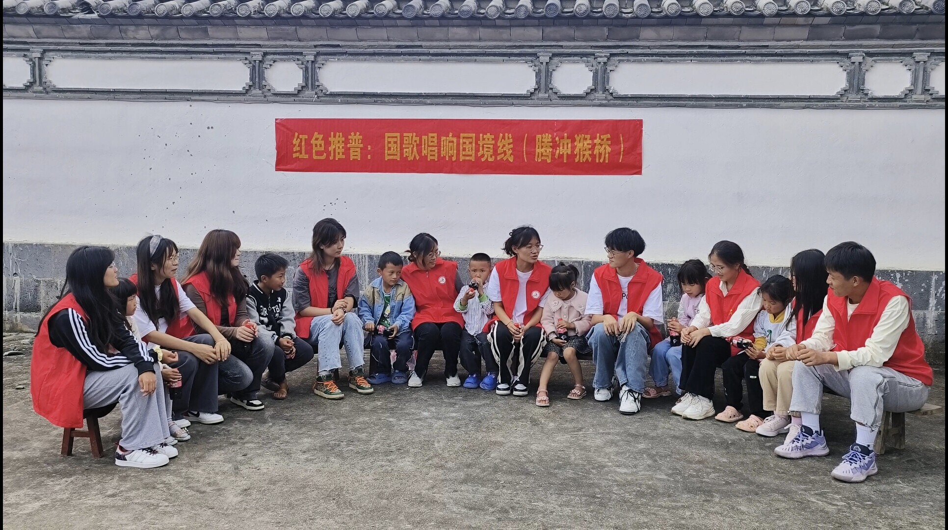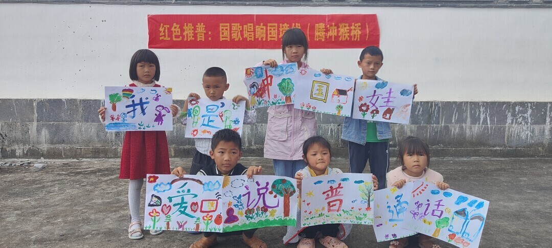 此次活动在孩子们的朗朗歌声开始,实践团成员和当地的孩子们开展“你我同唱一首歌”主题活动,“我用画彩画团结”,“聂耳和国歌的故事”等对少数民族小孩子开展特色普通话小课堂,与小孩子共同绘画,共同歌唱,共同舞蹈,共同游戏等在此过程中潜移默化对孩子们的普通话的发音进行纠正与指导。