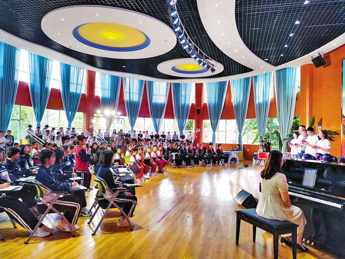 活动以“一座城 一首歌”为授课主题。课堂上,玉溪师范学院马克思主义学院院长、玉溪市聂耳和国歌研究会会长时遂营教授讲授了玉溪精神和国歌精神的内涵,来自各学校的学生纷纷参与到课堂互动中。随后,市一幼的孩子与老师展示绘画作品、讲述聂耳童年故事;江川区九溪镇马家庄小学若水童声合唱团表演了《卖报歌》;市聂耳纪念馆讲解员黄昱悦和李艳琼讲述了聂耳成长故事及国歌创作故事。此外,玉溪师范学院音乐学院的同学们还演唱了聂耳的经典作品,马克思主义学院和文学院的同学们带来了声情并茂的朗诵,时天羽同学分享了全家共唱一首歌的动人故事。