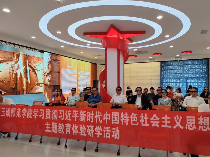 近日,玉溪师范学院马克思主义学院红色文化沉浸式体验馆迎来一批特殊学员——校党委理论学习中心组全体成员及相关部门、学院领导,通过全景VR身临其境体验红色影像、接受教育洗礼,新的学习方式丰富学习路径,推动主题教育走深走实。
