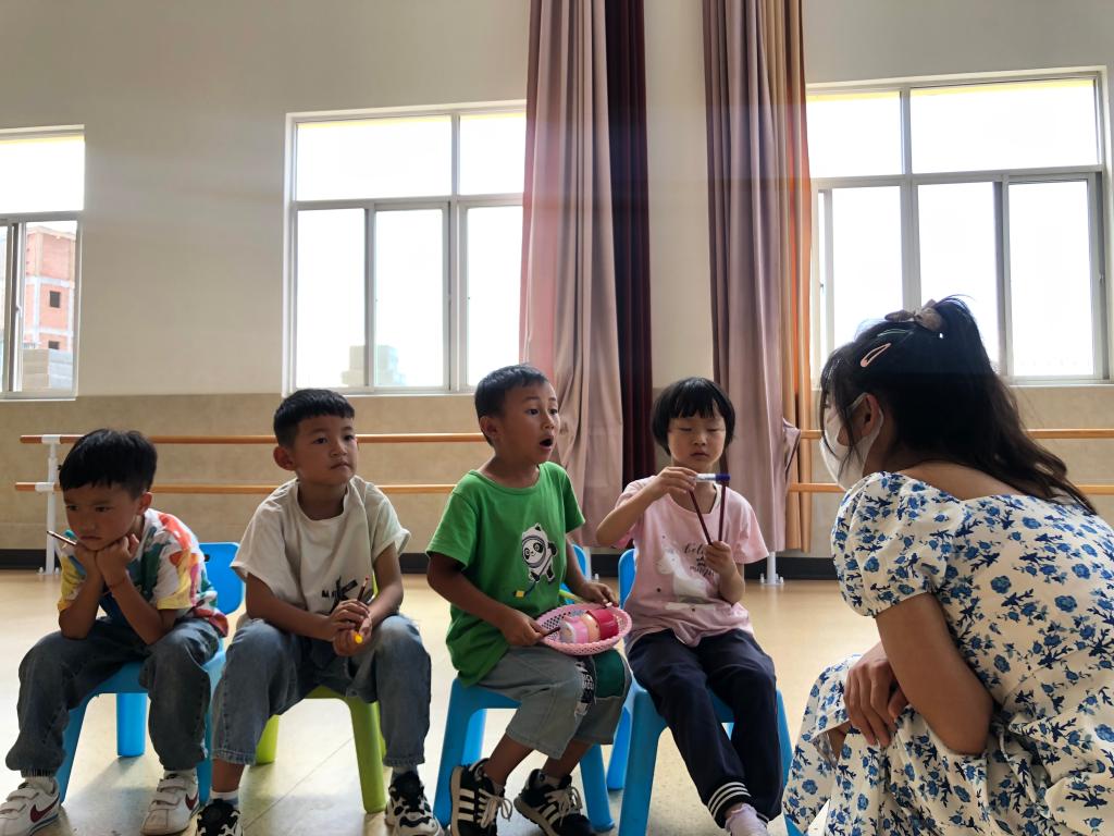 在幼儿园,团队结合当地非遗文化和红色文化以及相关音乐知识,发挥专业优势,开展“讲普通话,做文明人”的课堂小活动,用标准的普通话分享江川民间神话故事《牛郎织女》,并简单介绍“推普”活动,让小朋友们了解本次活动的意义,同时让部分小朋友加入到表演中,切实提高了幼儿园小朋友的参与感,更好的推进推广普通话活动实施。