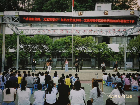 近日,一支由来自玉溪师范学院音乐学院在校生组成的“星火红色实践志愿团”志愿服务团队,在学院党委副书记黄睿老师、团委书记廖璟榕老师、辅导员杨丽娟老师、周树明老师的带领下,前往华宁县通红甸镇进行暑期三下乡社会实践活动,为中小学生带去了一场精彩纷呈的文艺演出。