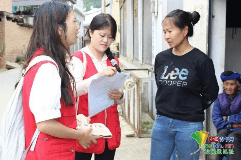 图为队员在向龙坝镇政府人员了解当地推普工作开展情况。中国青年网通讯员 陈思怡 供图