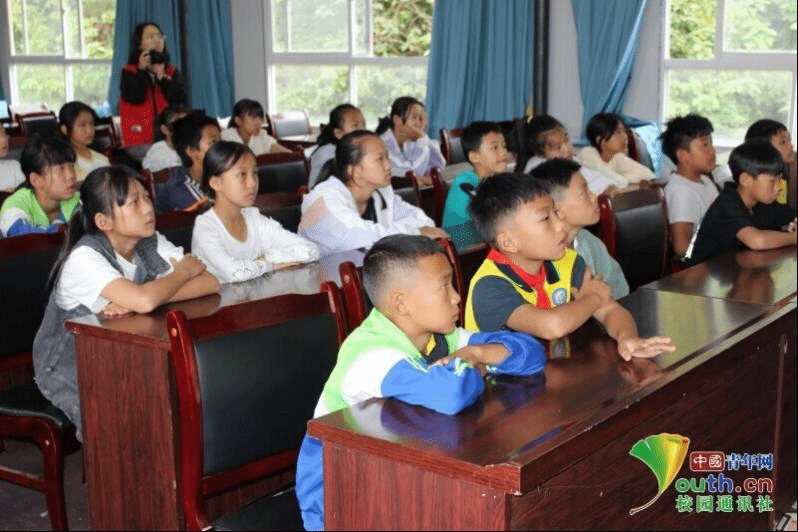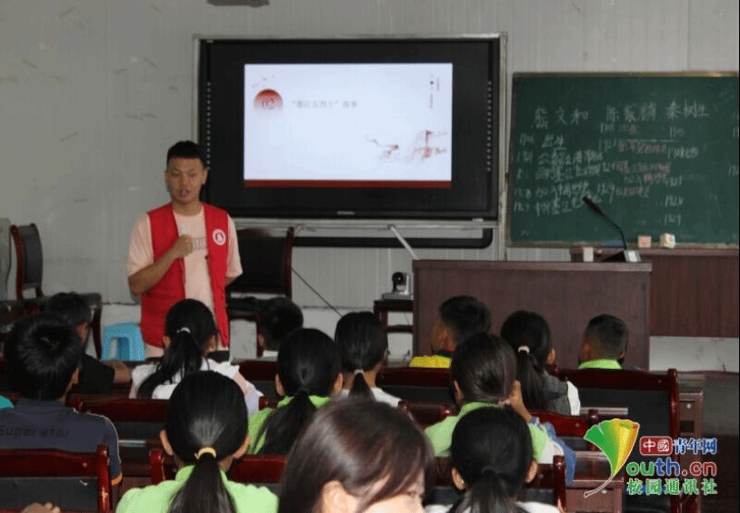 图为“推普小课堂”上队员付乾熙与学生互动。中国青年网通讯员 赵碧姣 供图