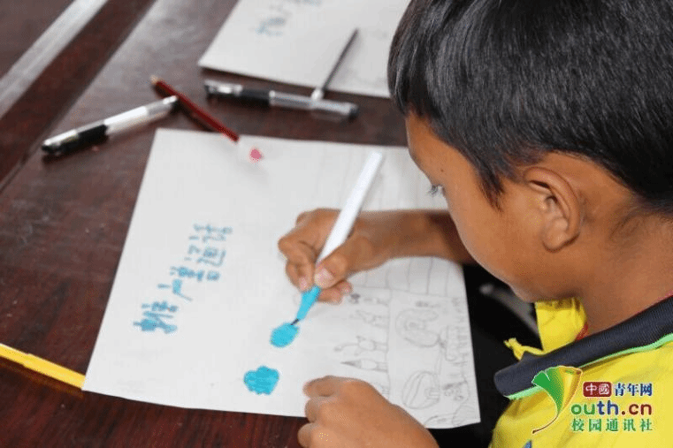 图为龙坝镇小学的小朋友在设计推普海报。 中国青年网通讯员 赵碧姣 供图
