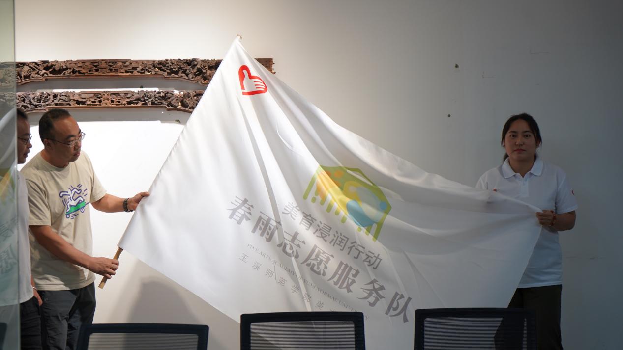 安镇宙处长为学院美育浸润行动的带队教师李小兵、姚青授旗,对派驻的师生提出学会教学、学会团结、学会总结、学会观察、学会照顾自己等要求,期望同学们不负学校、不负青春、不负所学。