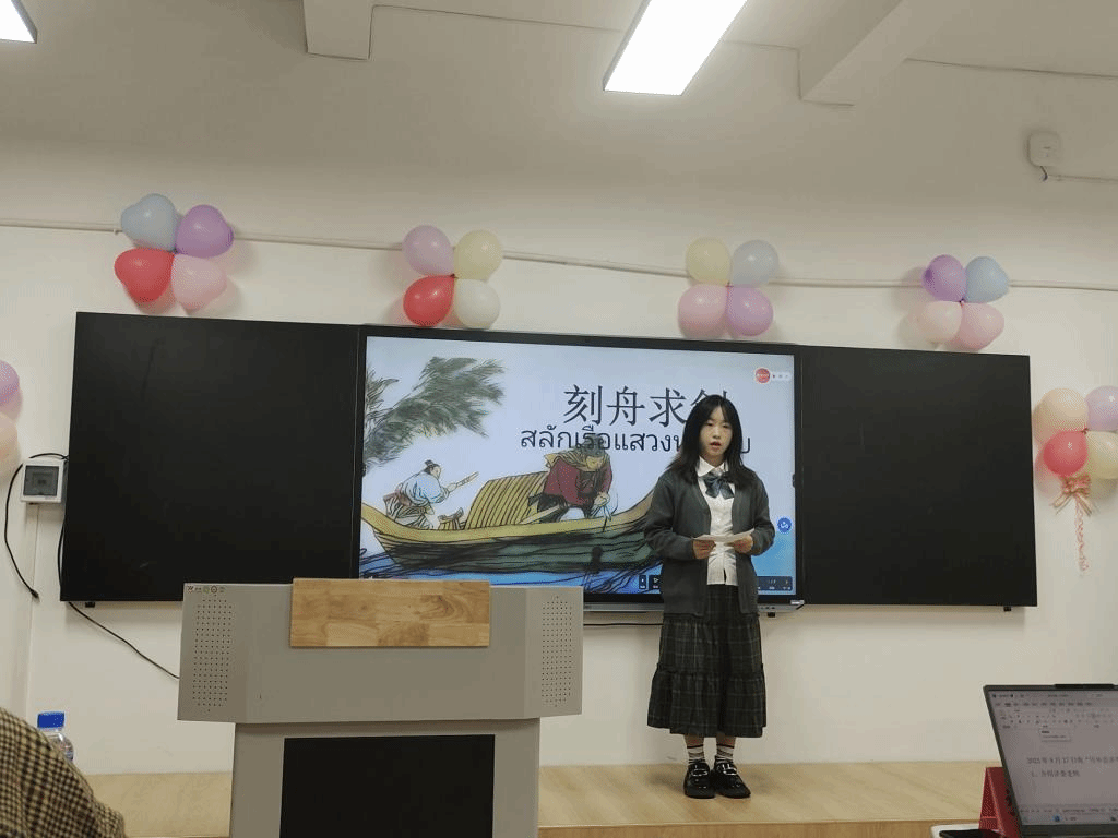 来自全校的各参赛选手以多种多样的展示方式生动地讲述了成语故事,有的选手穿上了汉服,有的选手自带道具,整个比赛氛围既紧张又赏心悦目。整个比赛紧凑有序地进行,各位选手们用英语、泰语和缅甸语向观众们展示了不同的成语故事,给大家带来了一场优秀文化盛宴。