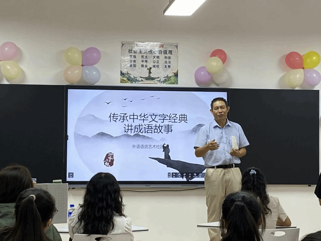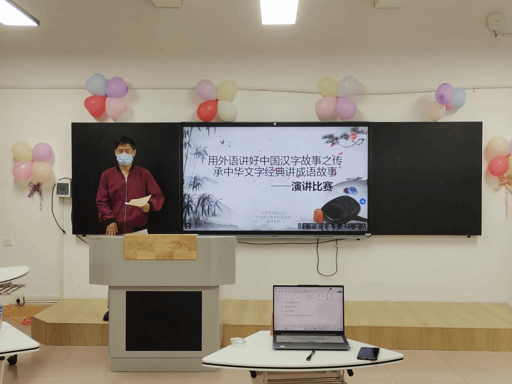 外国语学院于2023年9月27日19:00在二教举办了以“用外语讲好中国汉字故事之传承中华文字经典·讲成语故事”为主题的演讲比赛决赛。此次比赛分为英语专业组,非英语专业组及泰缅语组,英语、泰语和缅甸语等9名老师分别担任评委。