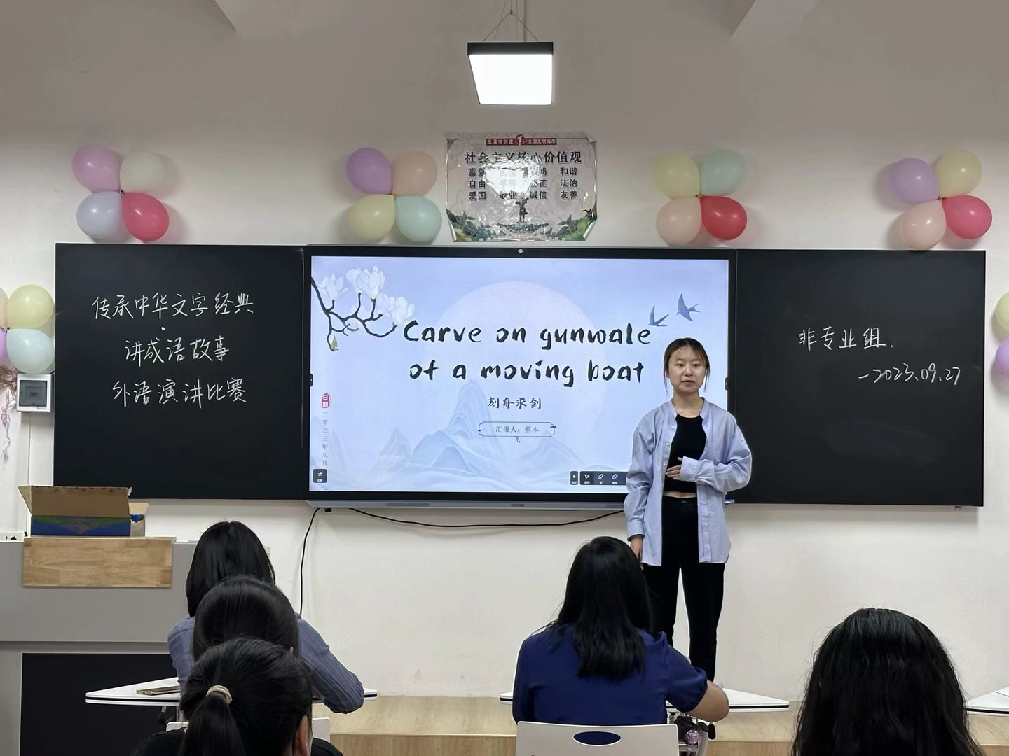 本次比赛为同学们搭建了展示自我的平台,不但锻炼了同学们的演讲能力,更是弘扬中华优秀传统文化,推进文化自信自强的实践,也是同学们对中华经典的传承与创新实践。用外语讲好中国故事是新时代赋予每位外语学习者的历史重任,讲好中国故事,传播好中国声音更是外语专业学生厚植爱国情怀的重要时间。通过讲好中国文字故事,让更多的人了解汉语,弘扬中华优秀传统文化的重任更需要同学们明确专业学习的方向。高校青年学生应勇于担起时代重任,夯实专业基础,将爱国情怀转化为追求卓越的动力,做一个有理想的爱国青年,为实现中华民族伟大复兴凝聚磅礴力量。