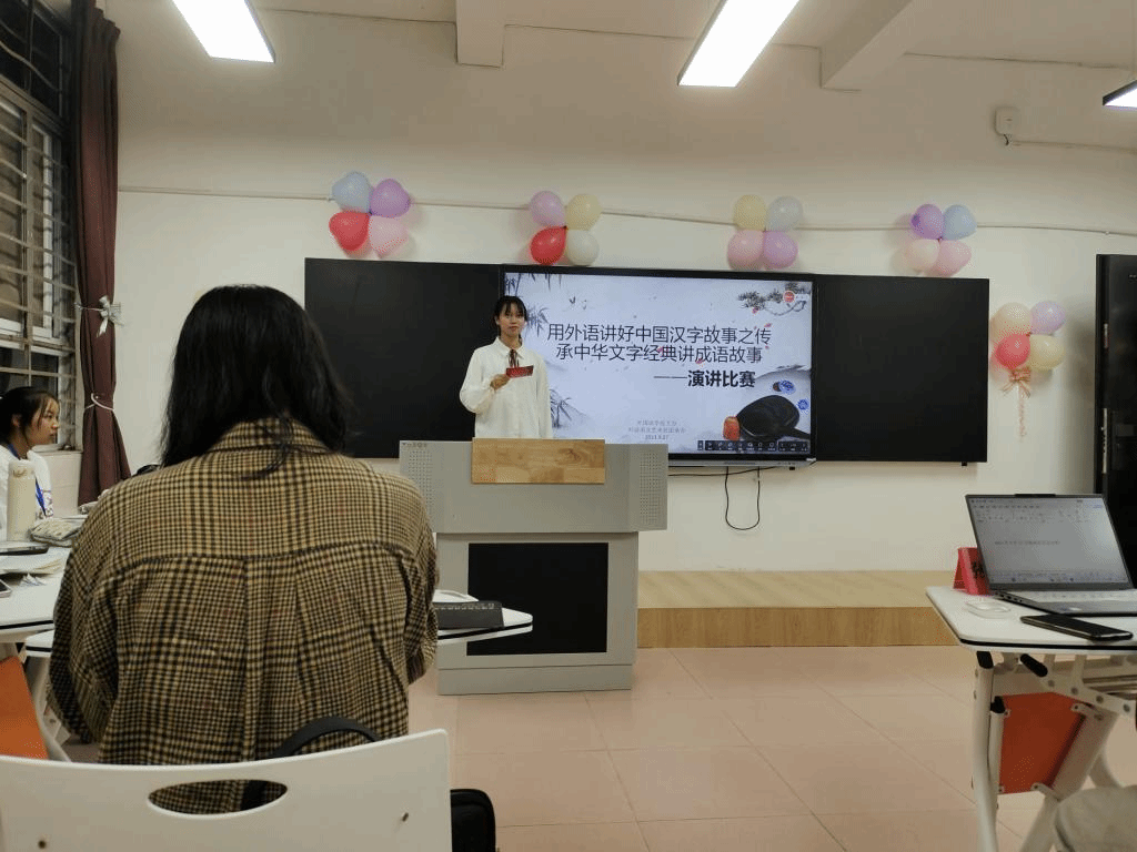 在比赛中,各组选手用不同的语言吟诵中国成语故事,将专业与中国汉字故事紧密结合,用外语讲好了中国成语故事,既展现了优秀的口语表达能力,又弘扬了中华优秀传统文化,坚定了文化自信,热烈洋溢的比赛氛围深深地感染了在场的所有观众。