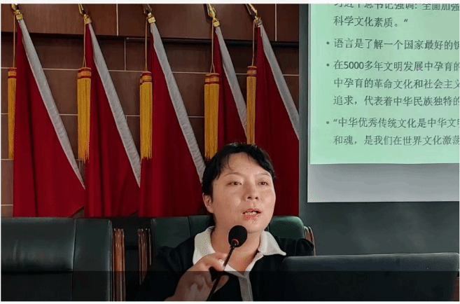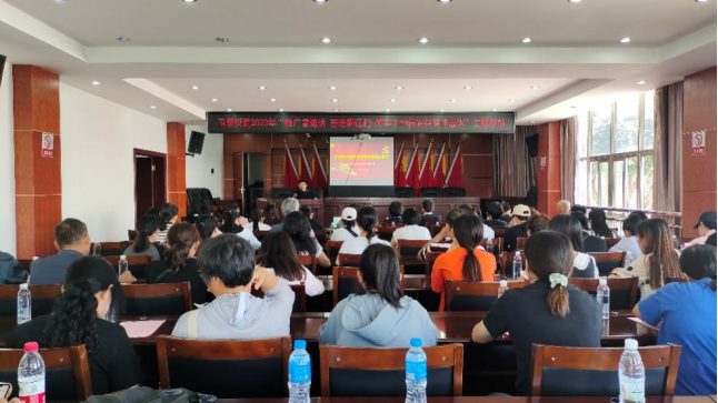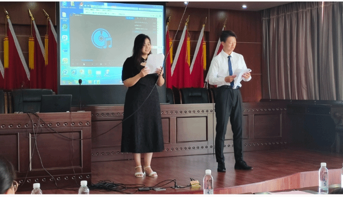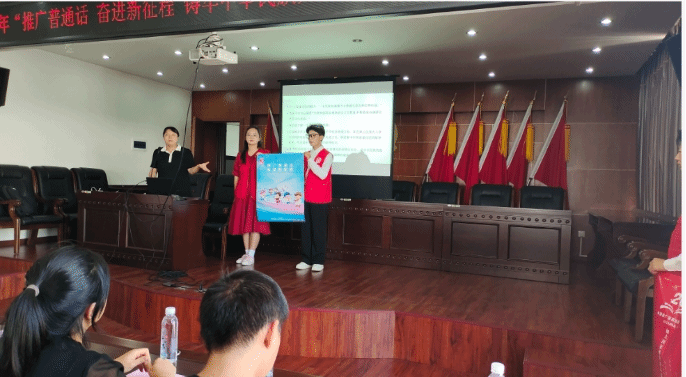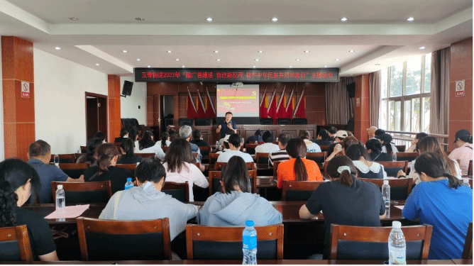 云南省普通话测评员赵敏老师带领全体人员朗读习近平总书记关于语言文字的重要论述及推普周口号,使大家认识到使用国家通用语言文字的重要性,有助于提升规范使用国家通用语言文字的意识和水平,营造说好普通话的良好氛围。