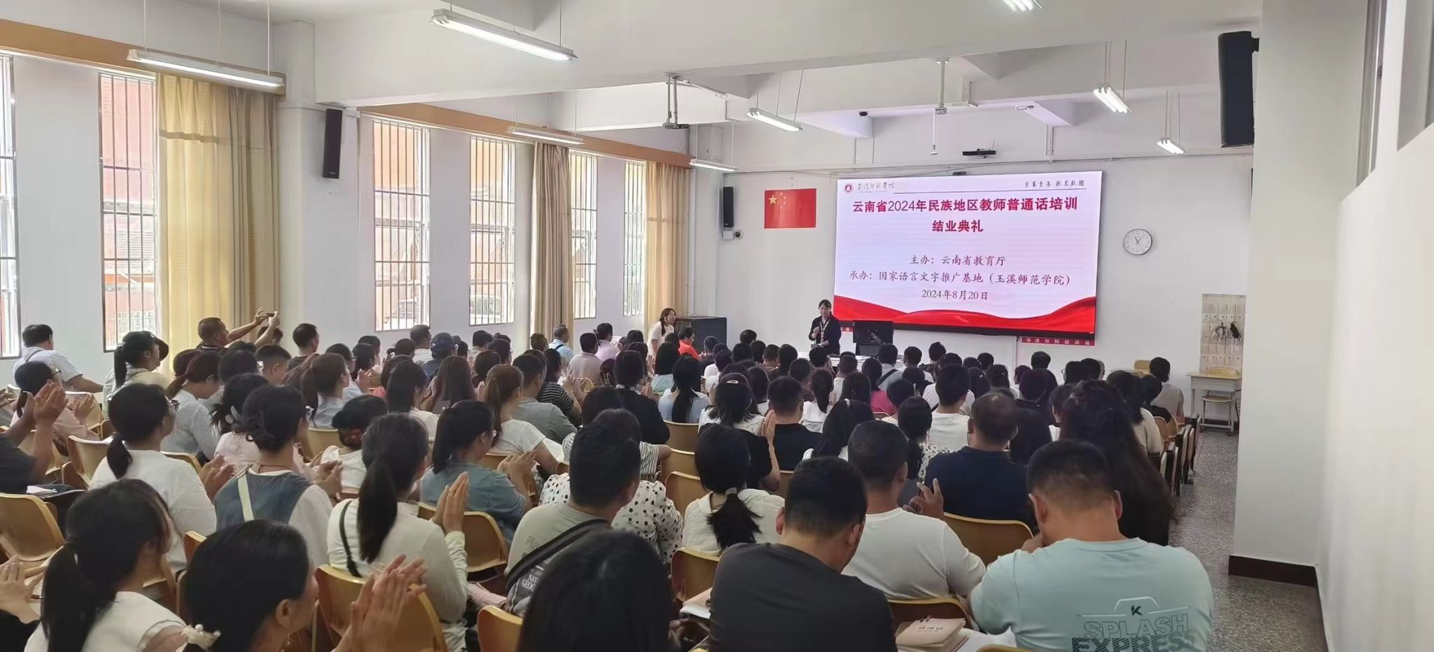 国务院办公厅印发的《关于全面加强新时代语言文字工作的意见》中强调,要大力提高教师国家通用语言文字核心素养,加强民族地区教师国家通用语言文字教育教学能力培训,提高教师国家通用语言文字应用能力。为贯彻落实教育部、国家语委对教师普通话的等级要求,8月11日至20日,由云南省教育厅主办,国家语言文字推广基地(玉溪师范学院)承办的2024年民族地区教师普通话培训在玉溪师范学院顺利举行。